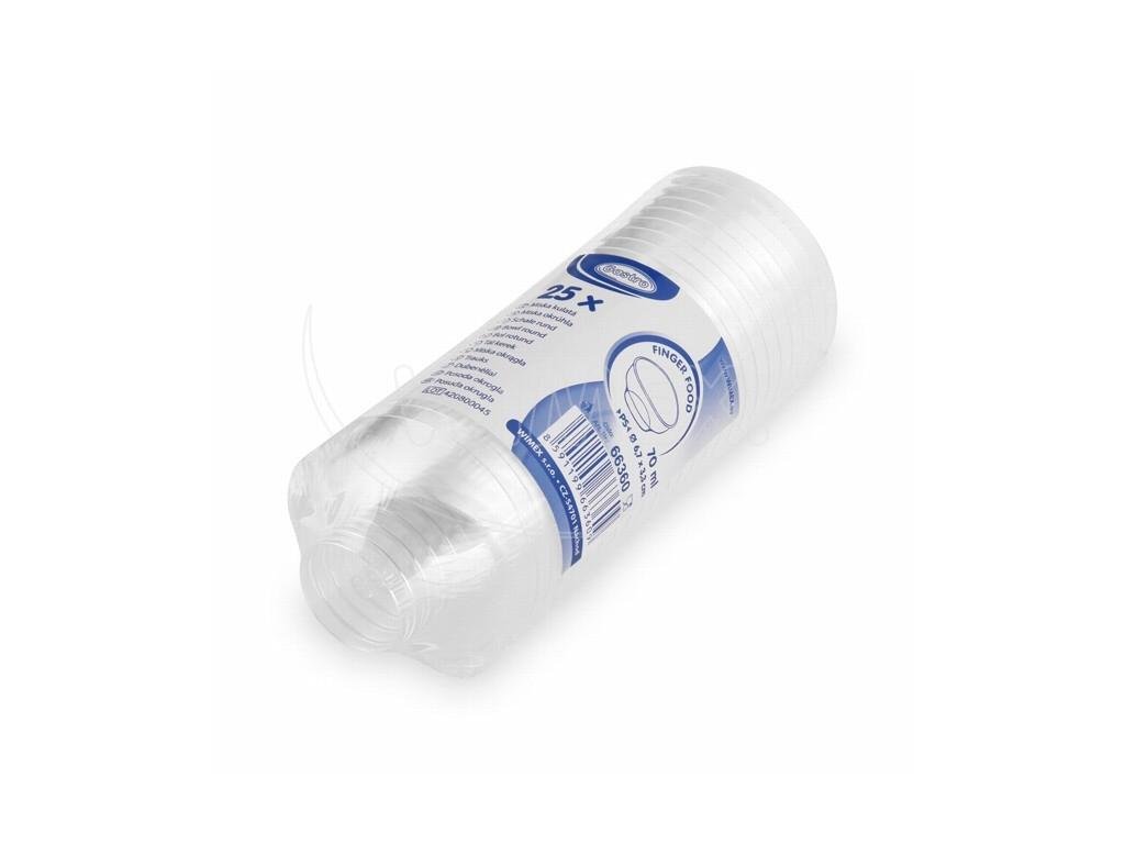 Název: | Fingerfood miska (PS) čirá Ø67 x 33 mm 70ml [25 ks] |