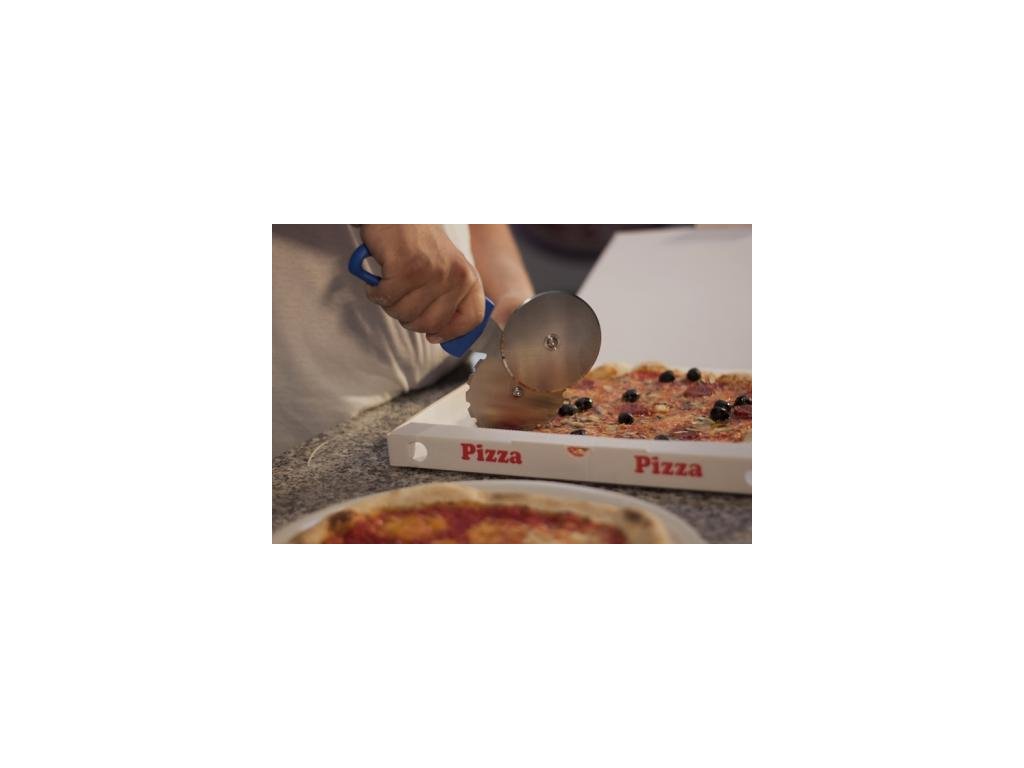- druhá čepel pizza klečka je specifická pro předřezání, to znamená, že je ideální pro pizzu s sebou a doručením domů. Zabraňuje úniku přísad během přepravy: krájí se do klínů, aniž by je úplně oddělil.