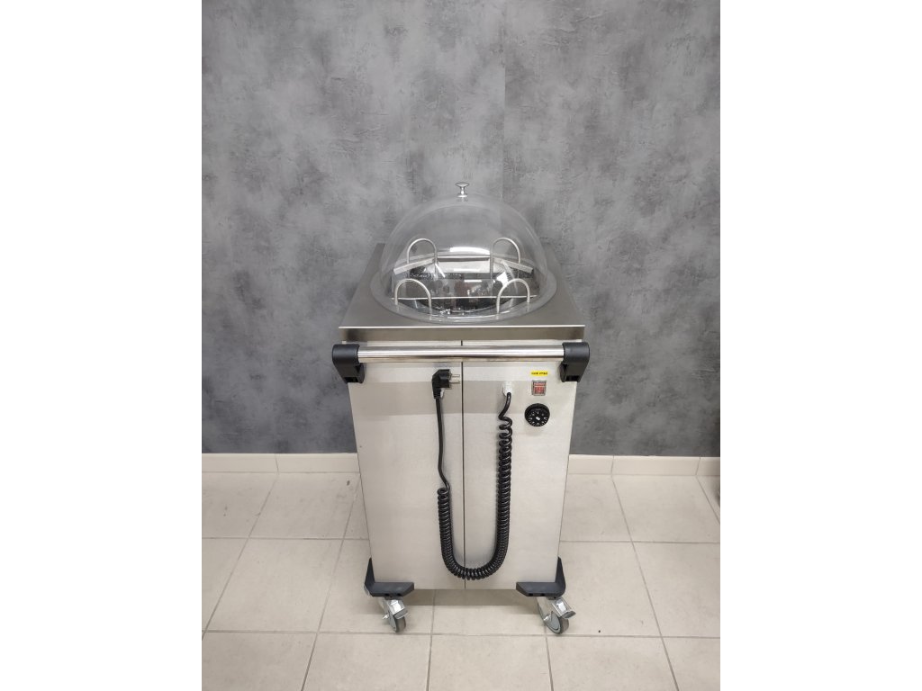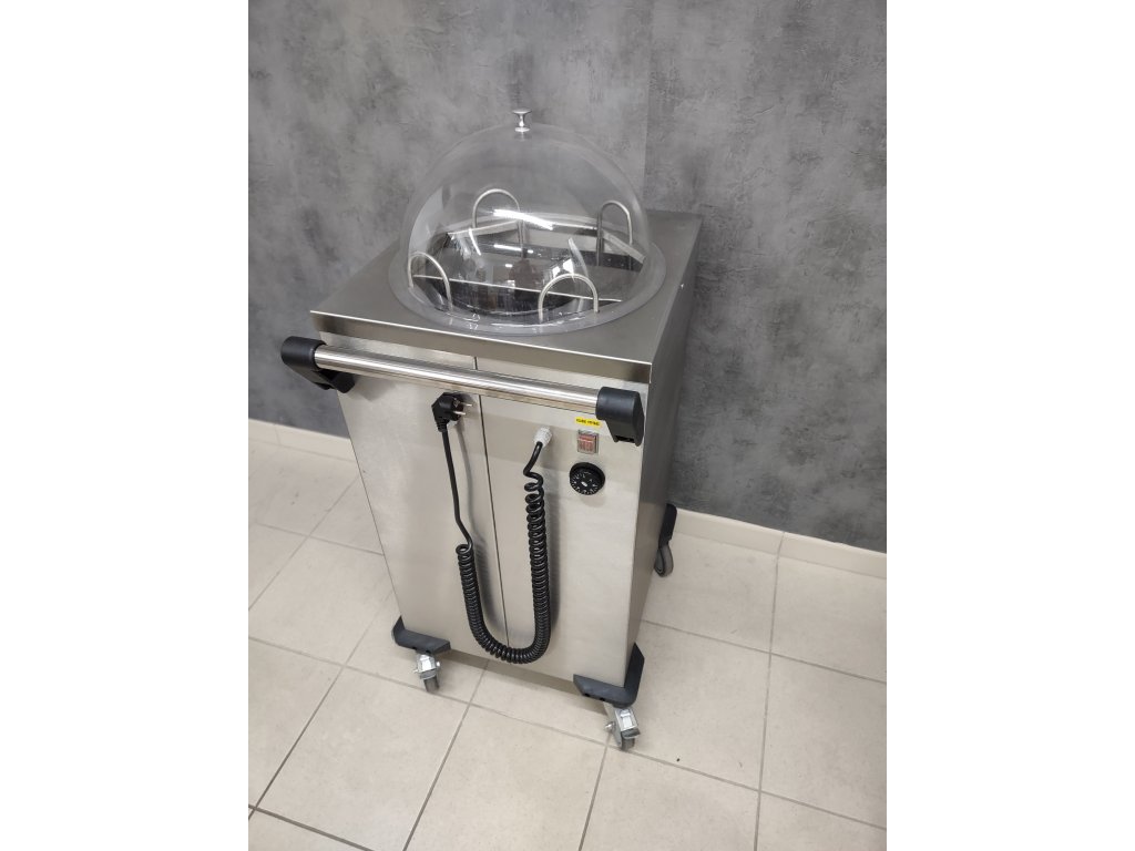 Info k ohřívači talířů: Snadná regulace teploty vnitřního prostoru zásobníku v rozpětí +30°C až + 80°C. Ohřívač talířů má vnitřní prostor uzpůsobený pro vkládání talířů od 190 mm až do průměru 320 mm a vybaven mléčným polypropylenovým zákrytem.
